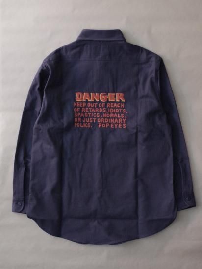 ポケットにフラップが付き、裾にはマチも付くベーシックなスタイルのワークシャツ。ヴィンテージ感のある佇まいに背面、胸と裾に刺繍が施されたPOP EYESらしいワークシャツに仕上げられています。