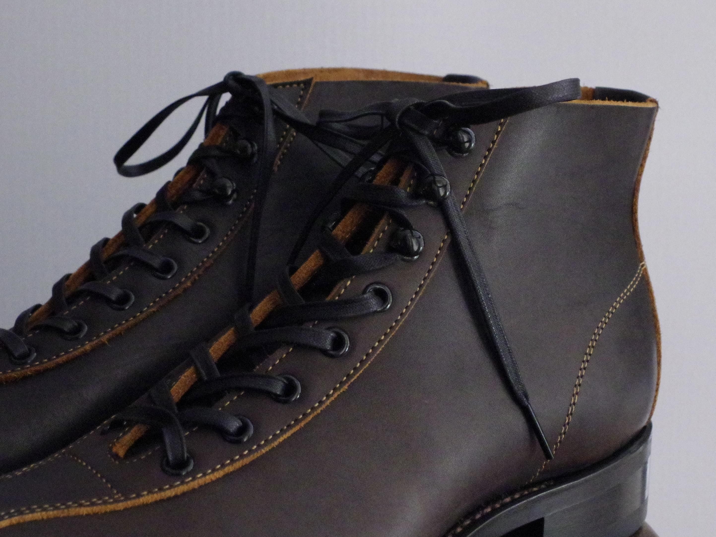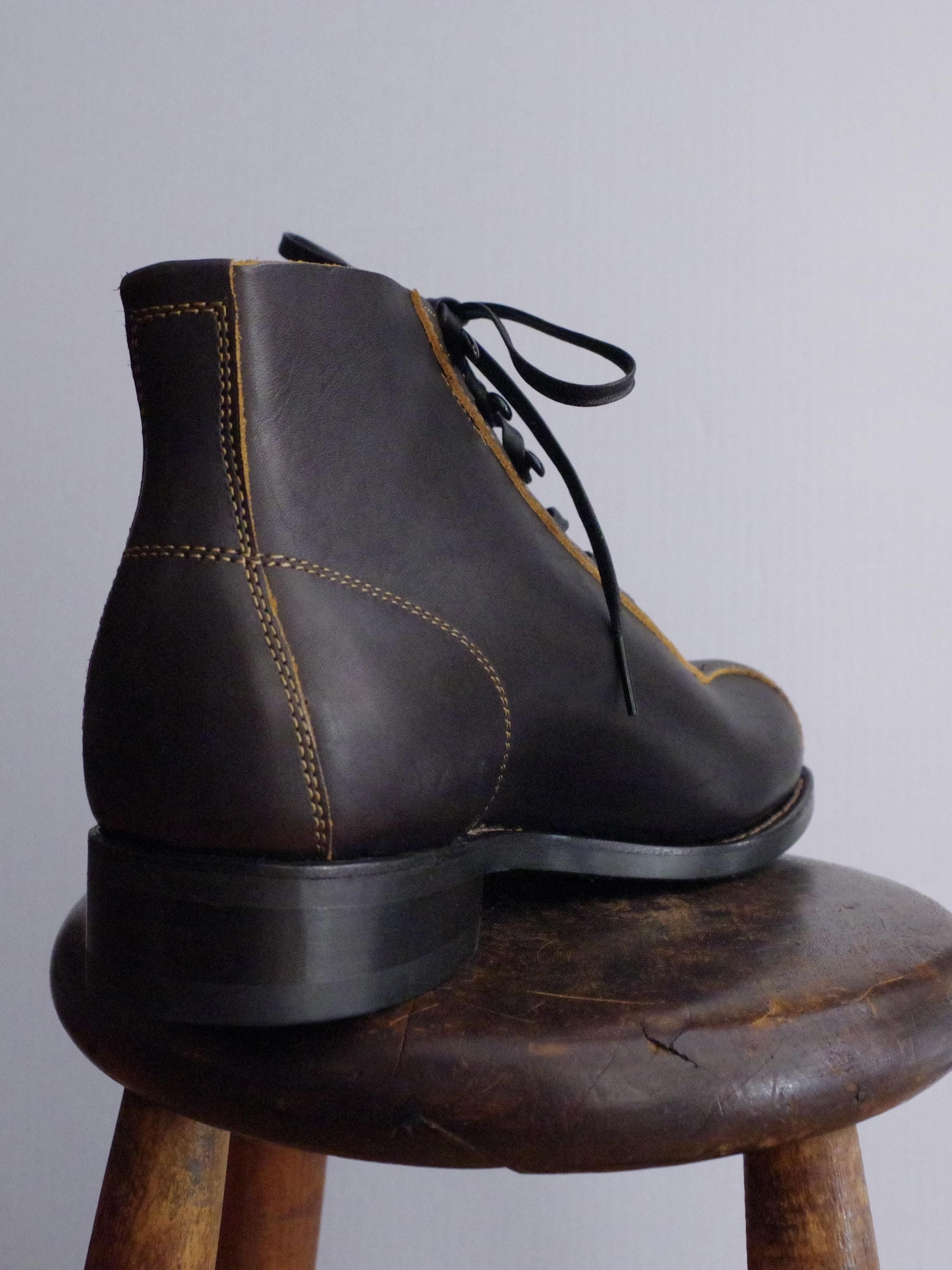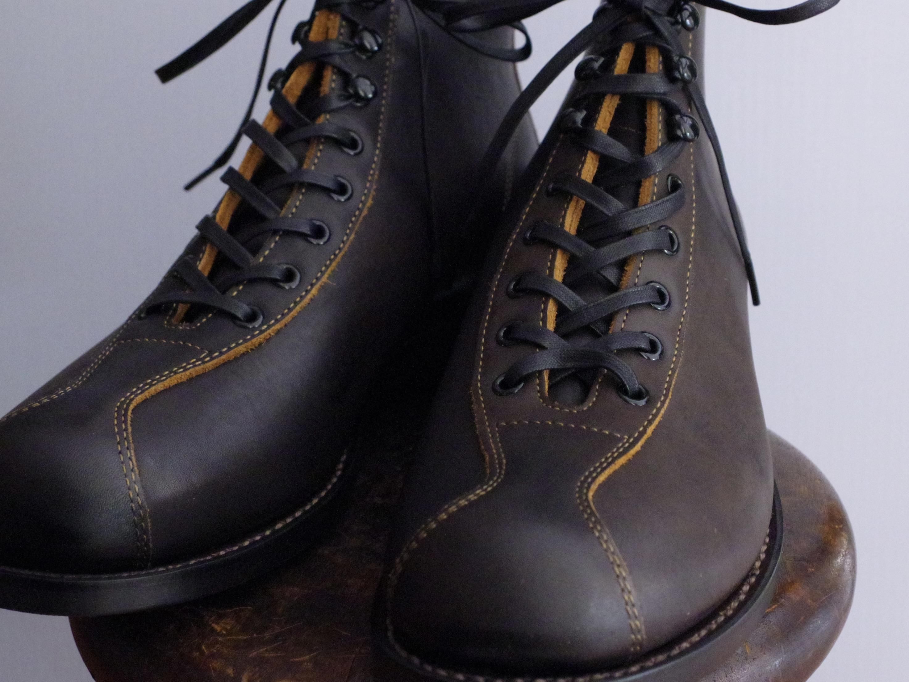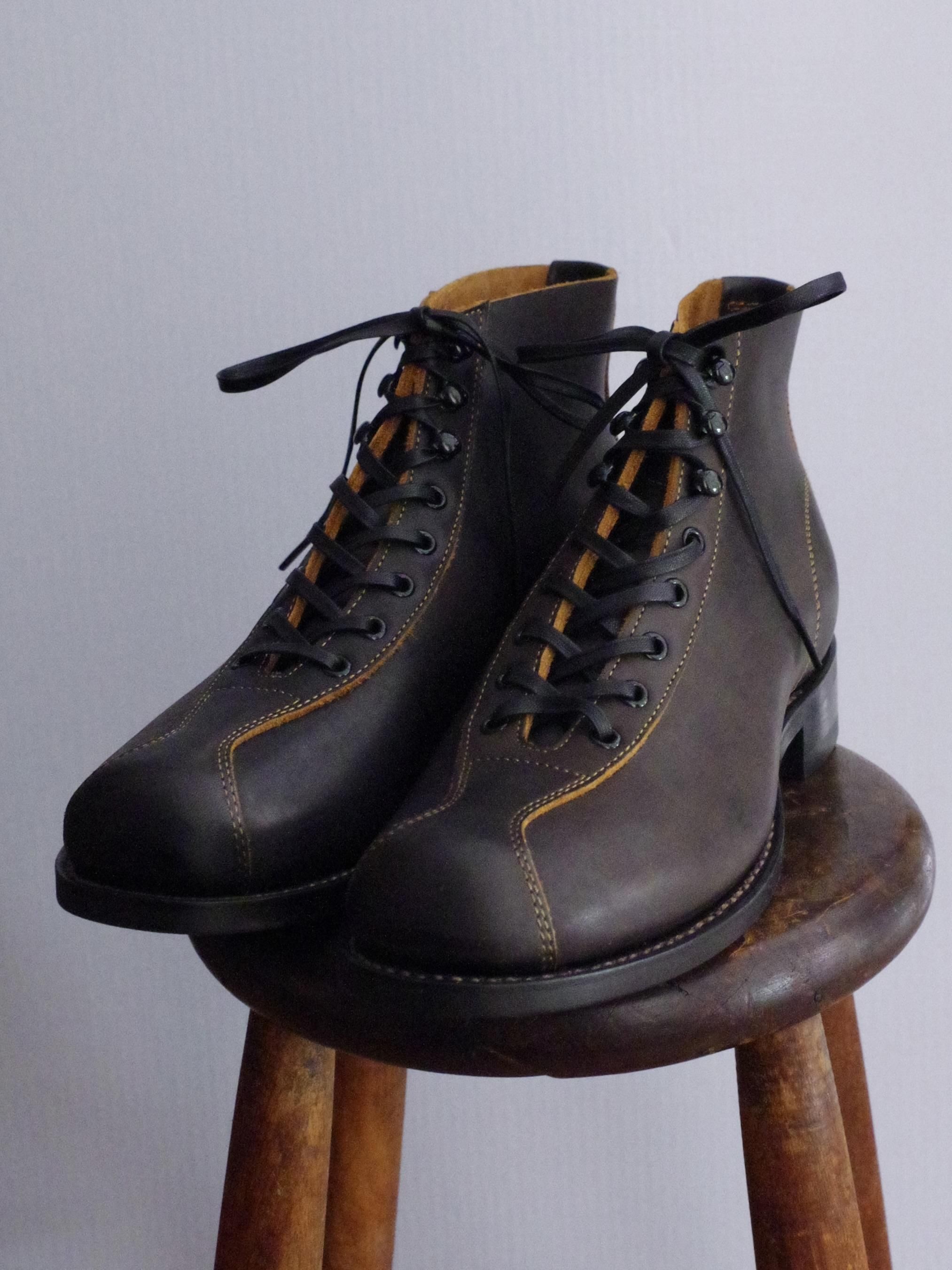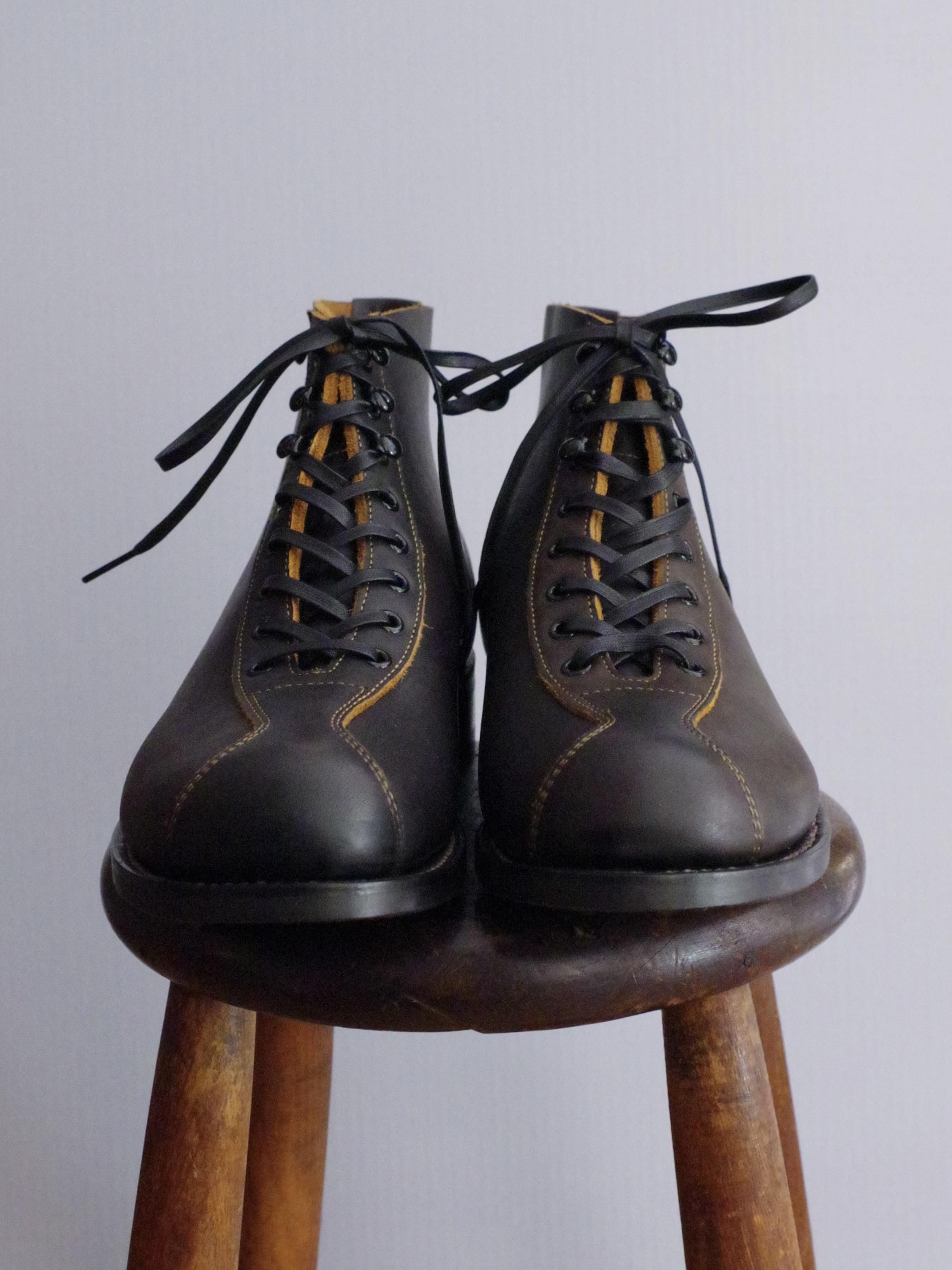 The 2 Monkeys の RANDONNÉE (ランドネ) は、当時のデザインをベースに、マンソンラスト のつま先を修正したオリジナルの木型を使い、約3mm厚の革でつくったブーツです。