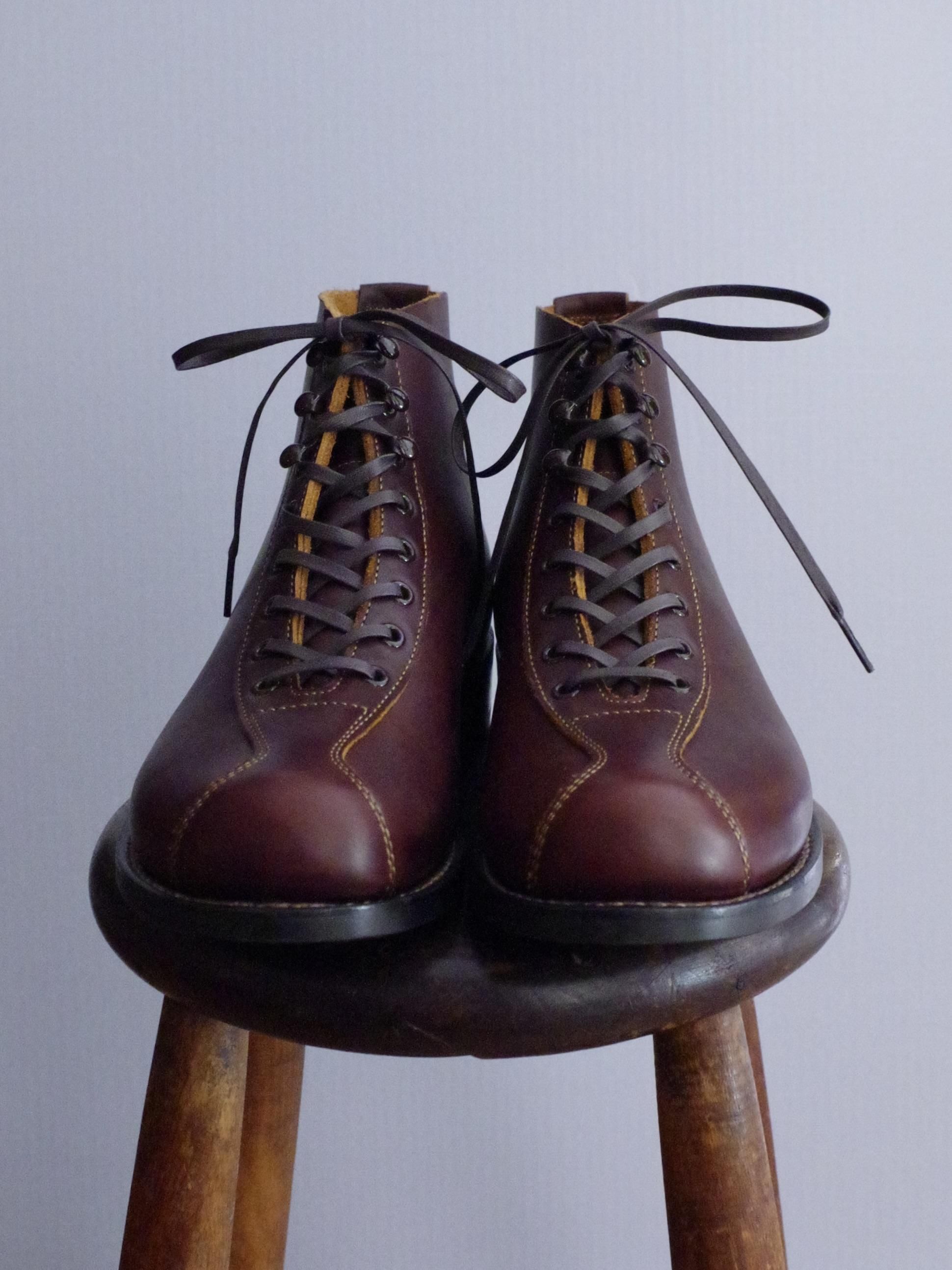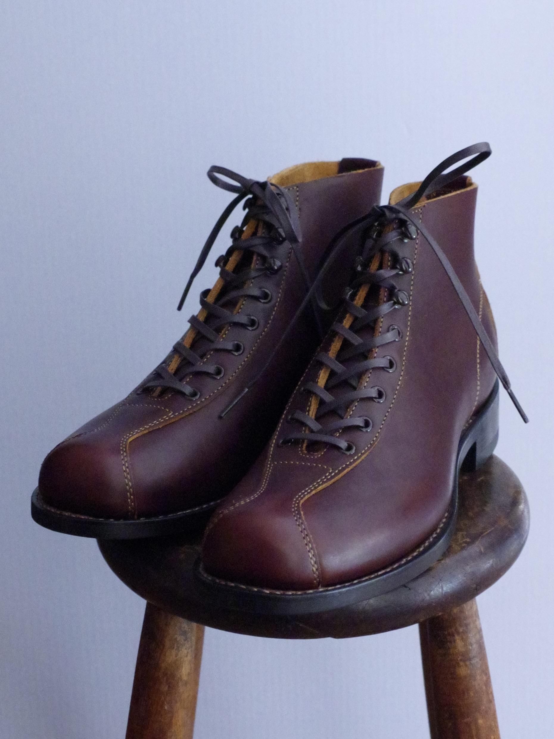 The 2 Monkeys の RANDONNÉE (ランドネ) は、当時のデザインをベースに、マンソンラスト のつま先を修正したオリジナルの木型を使い、約3mm厚の革でつくったブーツです。
