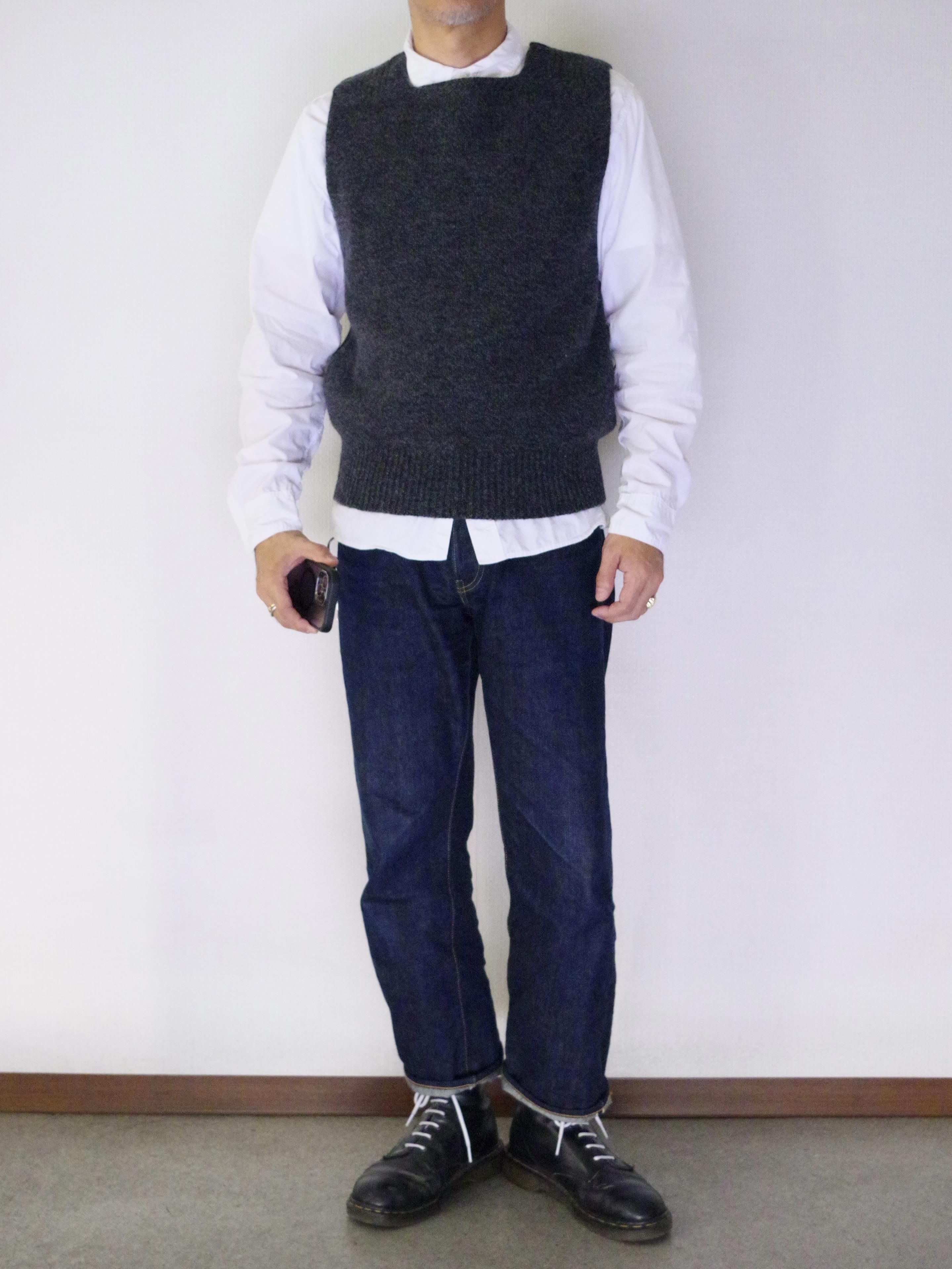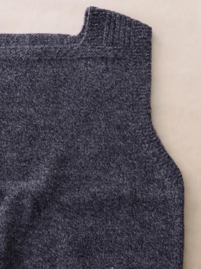 落ち着いた色味とシンプルな型でウールの風合いがより一層クラシカルな印象を与えてくれるニットベストに仕上げられています。