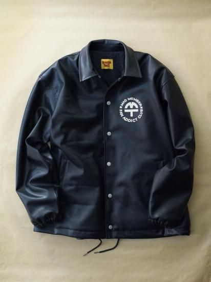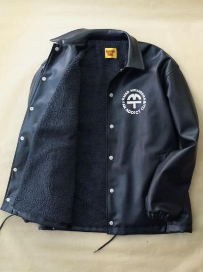 アンダーグラウンドな雰囲気漂うエコレザーを使用したコーチジャケット "MAD MEMBER FAN ADDICT CLUB JACKET"